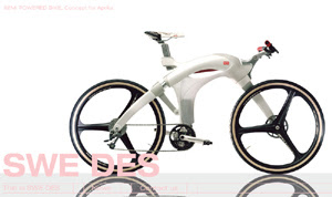 Pictured here is a partially fuel cell powered concept bicycle for the Italian motorcycle company Aprilia. It was designed by Sweden Design, a design group based in Hong Kong that is a collaboration between 3 Swedish design firms. This picture came from the group’s website; check it out for more info.