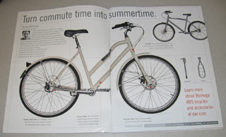 When I first started receiving the DWR catalog about 7 years ago, I loved it. I ordered a lot of furniture for the exhibit work I was doing at the time and I felt like the catalog was a great design resource. Back then, I never expected to see a bike for sale along with the modern and mid century classic furniture. Lately though, I came to realize that a catalog like that would be a great channel of distribution for bikes that are targeted toward design savvy, urban consumers. In a 2005 post, I wrote this: