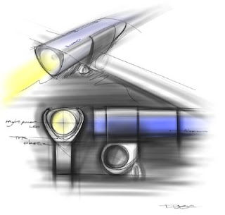 If you read this blog and also have a Flickr account, don’t forget about the Concept Bicycles pool that I started not long ago. So far, only two other people have submitted designs to the pool. The Luxo bike light sketch (pictured here) by Flickr user f9593n was the first image in the group, other than the ones I added. In addition to the sketch, you can see a couple 3-D computer renderings of the light in f9593n’s photostream. The other new image in the group is a CAD model of a recumbent from heinnick. In addition to the CAD model, I like the rough, but rideable, prototype of the design in his photostream that uses an old skateboard for a seatrest. It just goes to show that you don’t need a big prototyping budget to prove out a concept.