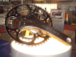 Eurobike is underway right now, but I am not paying as much attention to it as I would like (I am busy at work and also kind of focused on what is coming up in Greenville). If you are looking for pics from Eurobike, Fritz has posted a great list of bloggers who are covering the show. The crankset pictured here should come as no surprise. The Bicycling Magazine “This Just In” blog posted this picture of the new carbon Dura Ace crankset from the show. Also check out their post about the SRAM Red group, which I think looks very nice.