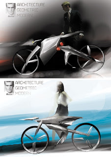 My first reaction, which I already passed on to Stelian, is that the rider position in both of these form study renderings is way too aggressive for a commuter-oriented bike. The average casual commuter wants an upright riding position that is much more relaxed than that of a racing cyclist. Stelian agreed with that comment and would like to get more constructive criticism from all of you who read this blog. He is going to start working on a full size mock up soon, so leave a comment if any of you have feedback that might help him with his project.