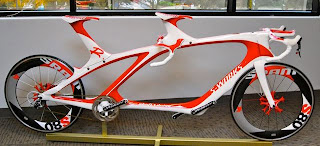 Bike Rumor posted pictures, taken by Conrad Stoltz, of this “one-off carbon fiber tandem based on Specialized’s 2010 SHIV time trial bike”. Wow! I want one…or I should say, “I want it” since there are no others in existence.